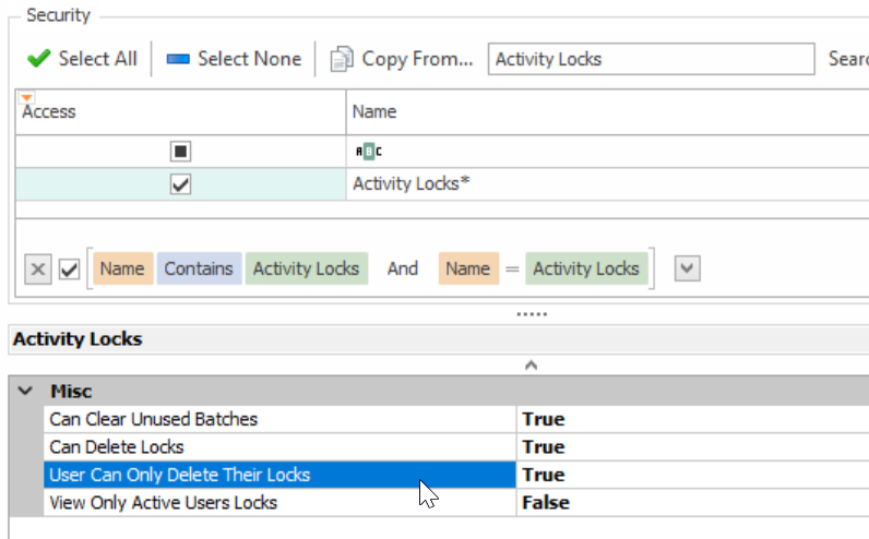 You may also configure users in a Security Group to only be able to view and delete their own locks using the following sub-security settings.