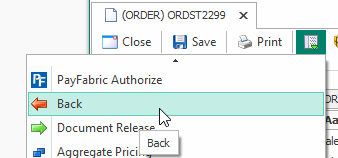 The Back plugin on a sales document moves a document to an assigned queue – useful for moving a document from a read-only queue back to a queue where it can be edited.