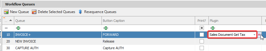 This will trigger the plugin as the document is forwarded out of the queue the plugin is set on. In the above example, as the document leaves INVOICE+, it triggers the plugin and calculates the tax.