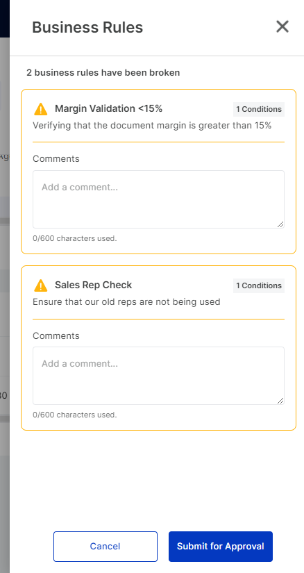 In the above example, the document broke multiple business rules but only appeared in one of the approval queues.