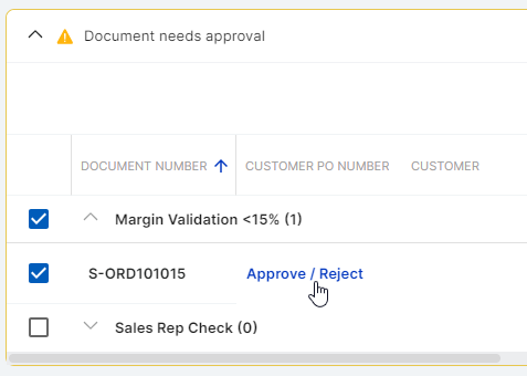 When approving a document on Mission Control, simply click the checkbox for the given document and then click the “Approve/Reject” link next to the document number.