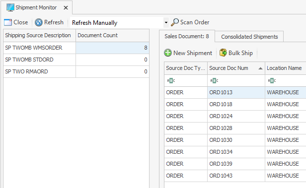 The Shipment Monitor screen is used to view shipping source documents and generate shipments for them.