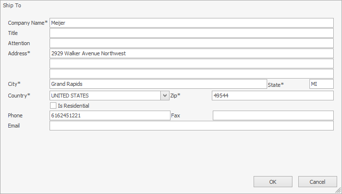 Clicking the blue portion of Ship To Address or the blue portion of Ship From Address will show the Address Editor. If a shipment is started from Shipment Monitor, then this should already be populated with the shipping destination from the source document.