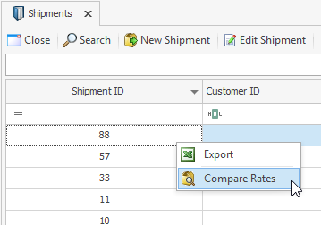 Right-clicking on a shipment will show the Compare Rates option, which will open the Rate Comparison screen that can be used to generate new shipments.