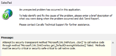 "Attempt by security transparent method 'Microsoft.Ink.InkPicture..ctor()' to call native code through method 'Microsoft.Ink.IInkOverlay.get_DefaultDrawingAttributes()' failed. Methods must be security critical or security safe-critical to call native code."